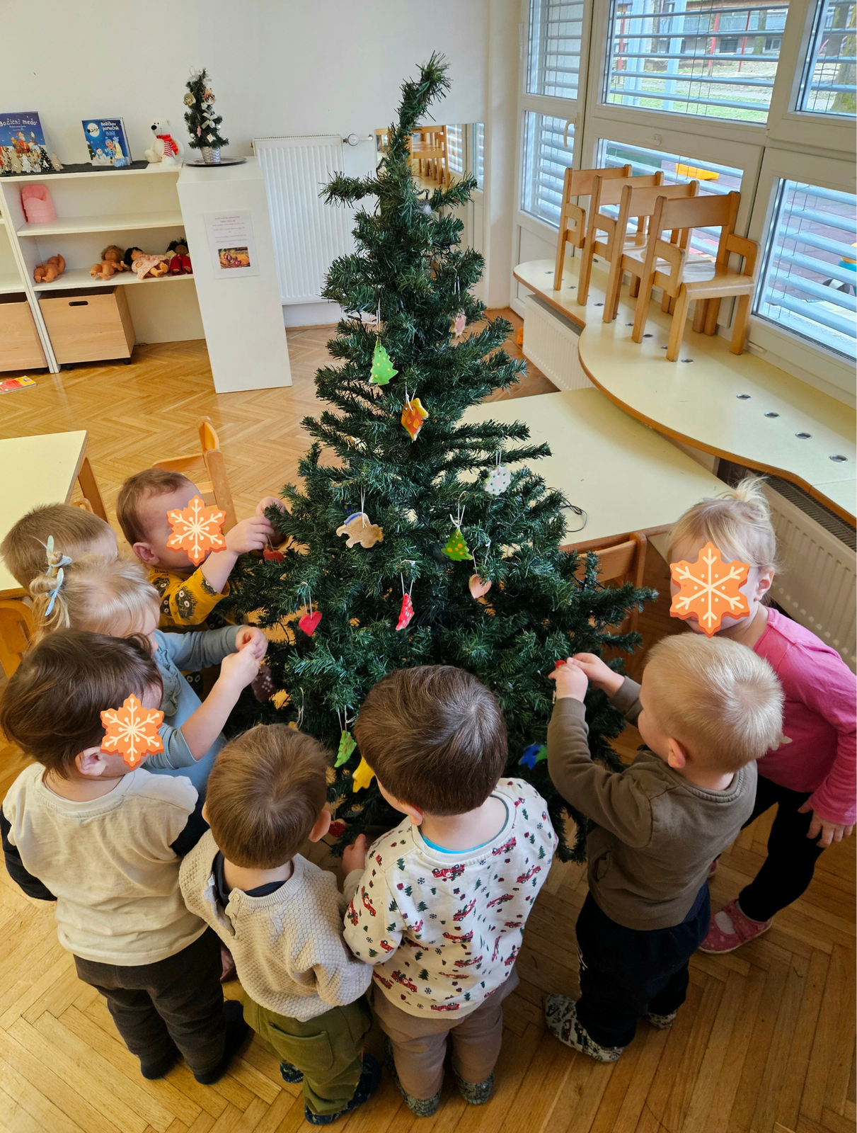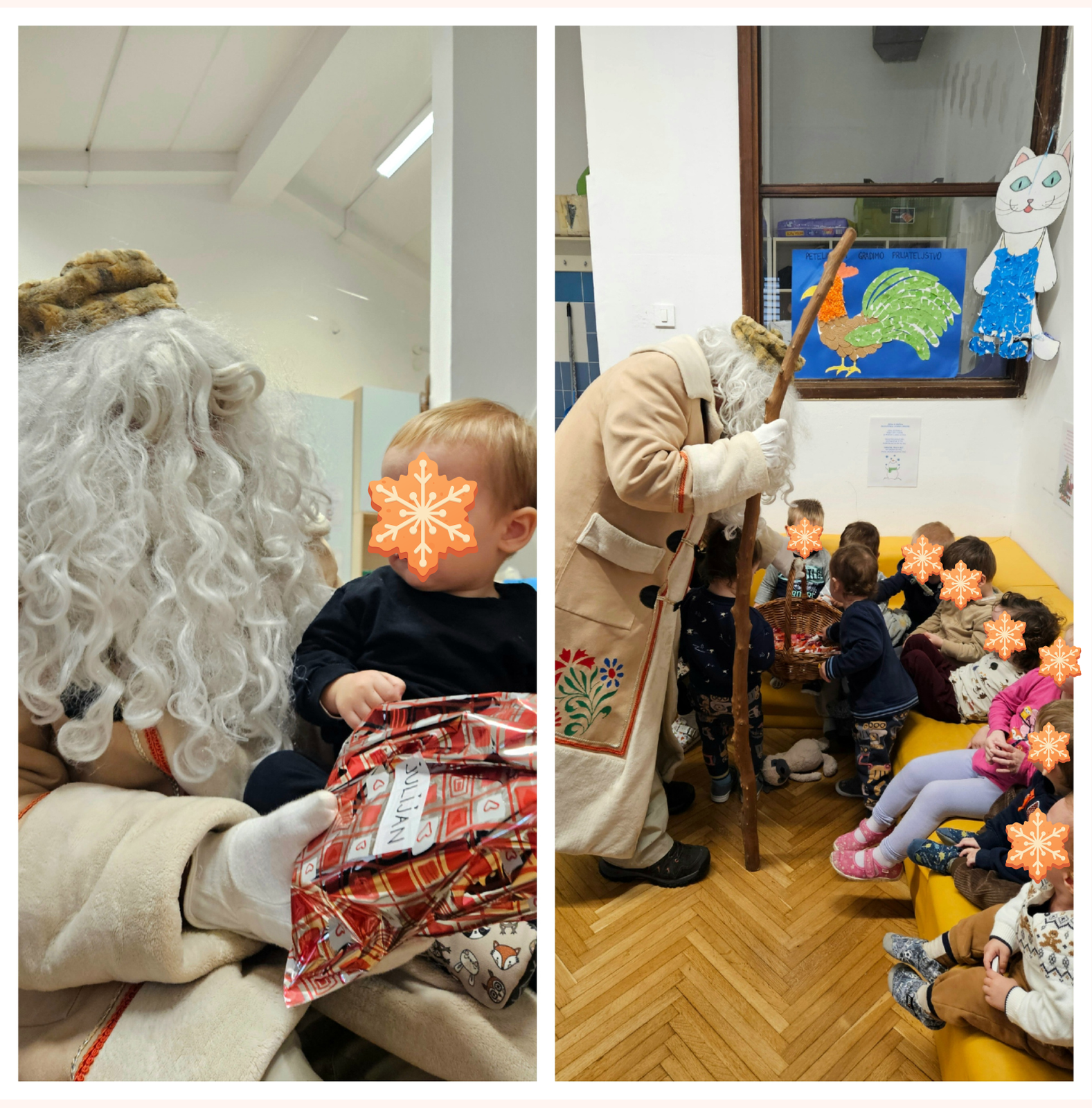 V mesecu decembru so bili dnevi pri Petelinčkih praznično obarvani, polni čarobnosti, iskrivosti in veselja. 😊✨ Na začetku meseca smo, s skupnimi močmi, okrasili smrečico 🎄, otroci so bili očarani nad lučkami, ki so jih vsakodnevno opazovali. Ustvarjali smo voščilnice in z njimi razveselili svoje najdražje. Obiskal nas je Dedek Mraz in nam polepšal dan, otroci pa so se pogumno stisnili v njegovo naročje. Ob koncu meseca so si ogledali predstavo »Skrivnost čarobnih medenjakov«, ki smo jo, s strokovnimi delavkami, zaigrale otrokom in z njo pričarale pravo decembrsko vzdušje. Seveda pa ni manjkalo otroškega druženja, razigranosti, petja in rajanja ob praznični glasbi. ⭐