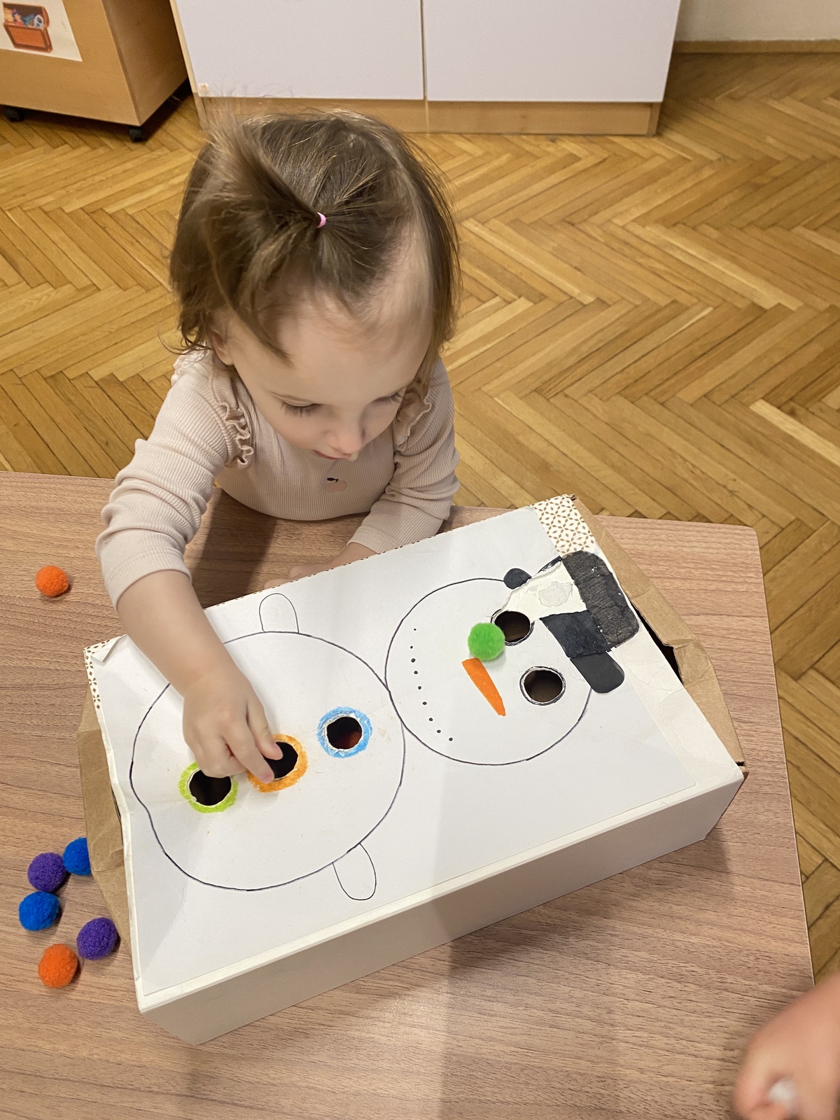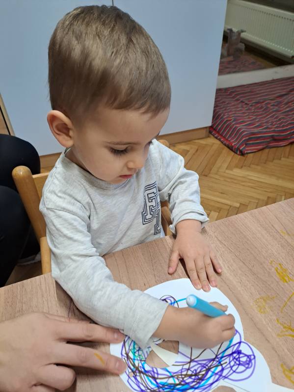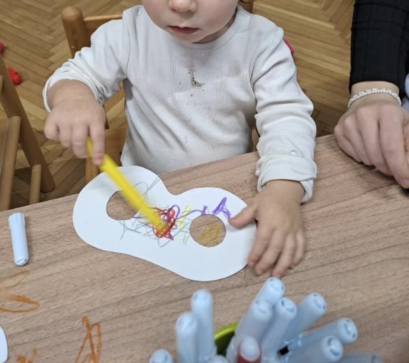 V mesecu februarju smo v skupini sprejeli štiri nove otroke in jim pomagali pri uvajanju v novo okolje. Veliko časa smo namenili igri, druženju in ustvarjanju prijetnega vzdušja. Skupaj smo izdelovali pustne maske, se pogovarjali o kurentih in se veliko igrali zunaj na terasi.