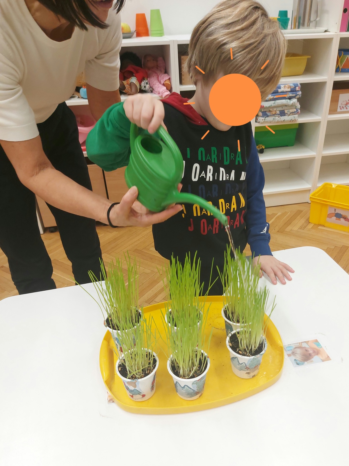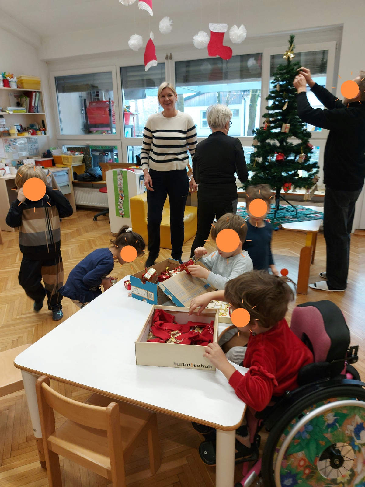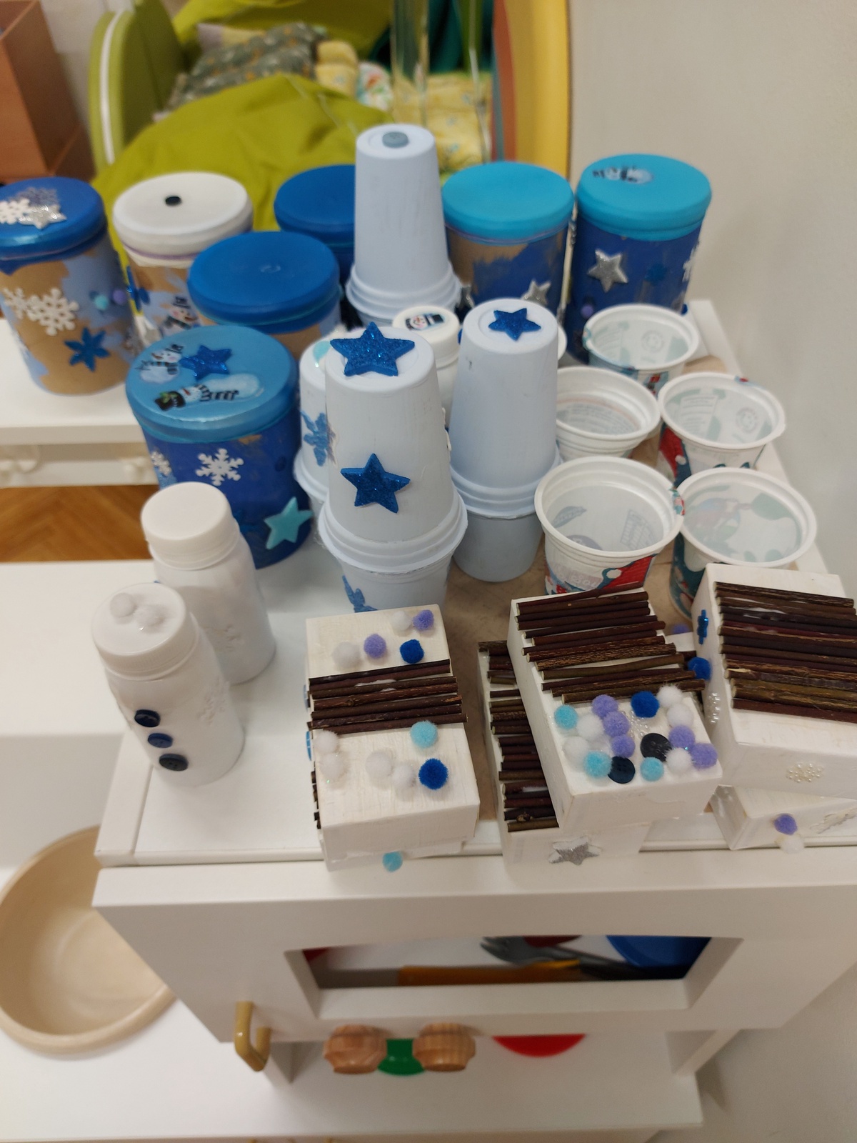 V decembru smo imeli pri Zajčkih kar dve delavnici. V prvi smo s starši izdelovali male inštrumente iz odpadnega materiala za razstavo in v drugi s starimi starši krasili novoletno jelko. Sejali smo praznično žito in ga pridno zalivali. Izdelali čestitke in animirali preproste lutke. S svojim obiskom pa nas je razveselil tudi Dedek Mraz.