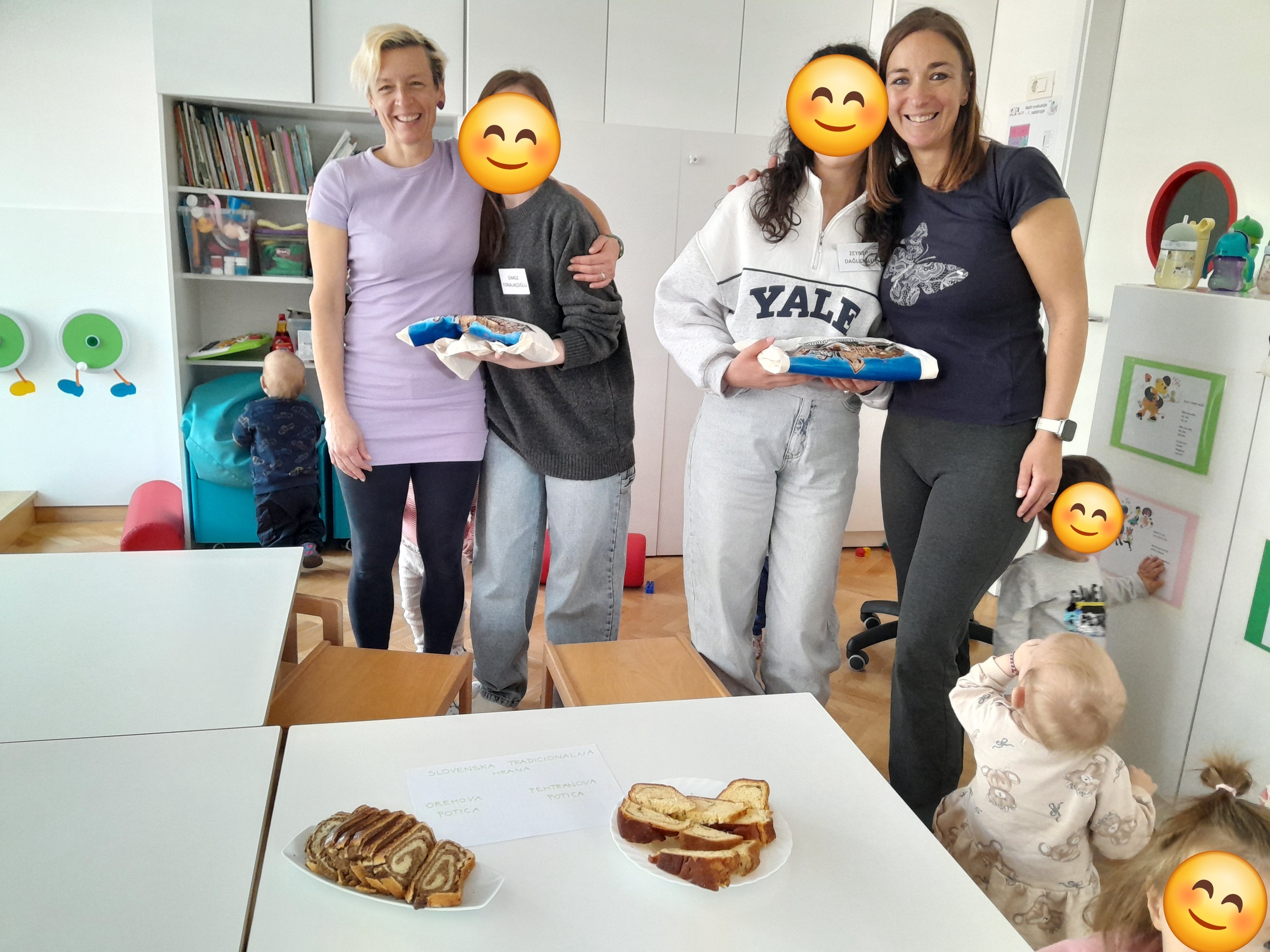 V mesecu aprilu se je pri nas veliko dogajalo. V skupinah so se nam v okviru programa Erasmus+ pridružile dijakinje iz Turčije. V enem tednu so spoznale naše delo v jaslih, okusile slovensko specialiteto – potico – ter se srečale s slovensko glasbo in harmoniko. Tudi otroci so ob tem spoznavali turško kulturo.