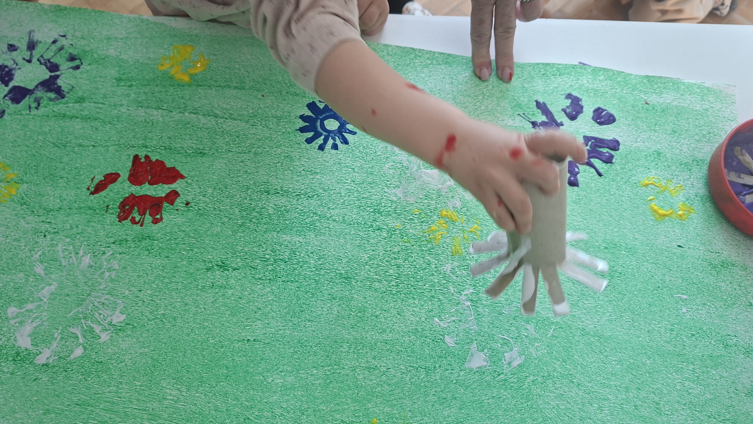 Pomladno vzdušje smo prenesli tudi v vrtec. Z barvanjem in tiskanjem cvetlic smo spodbujali ustvarjalno izražanje ter otrokom približali prebujanje narave.