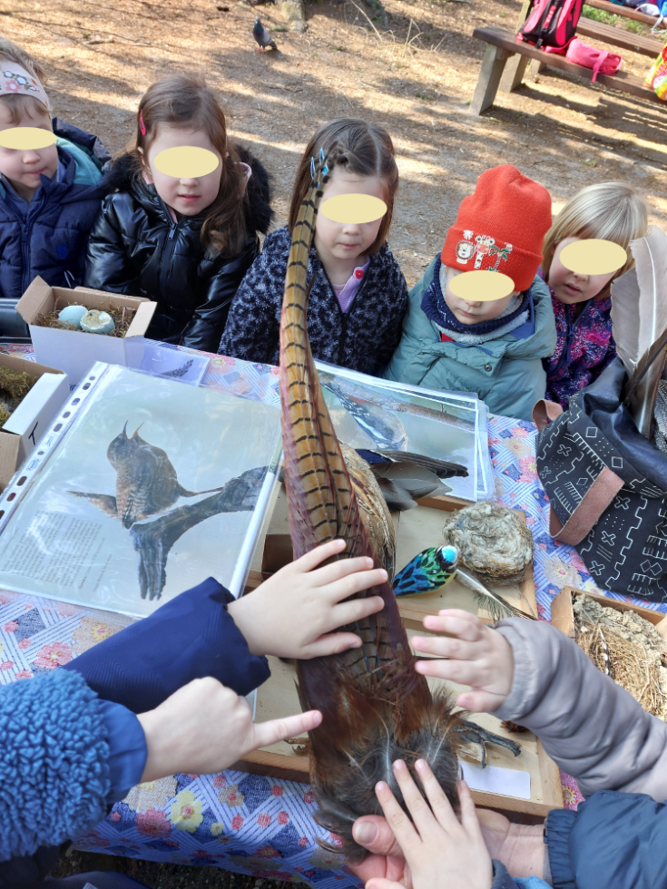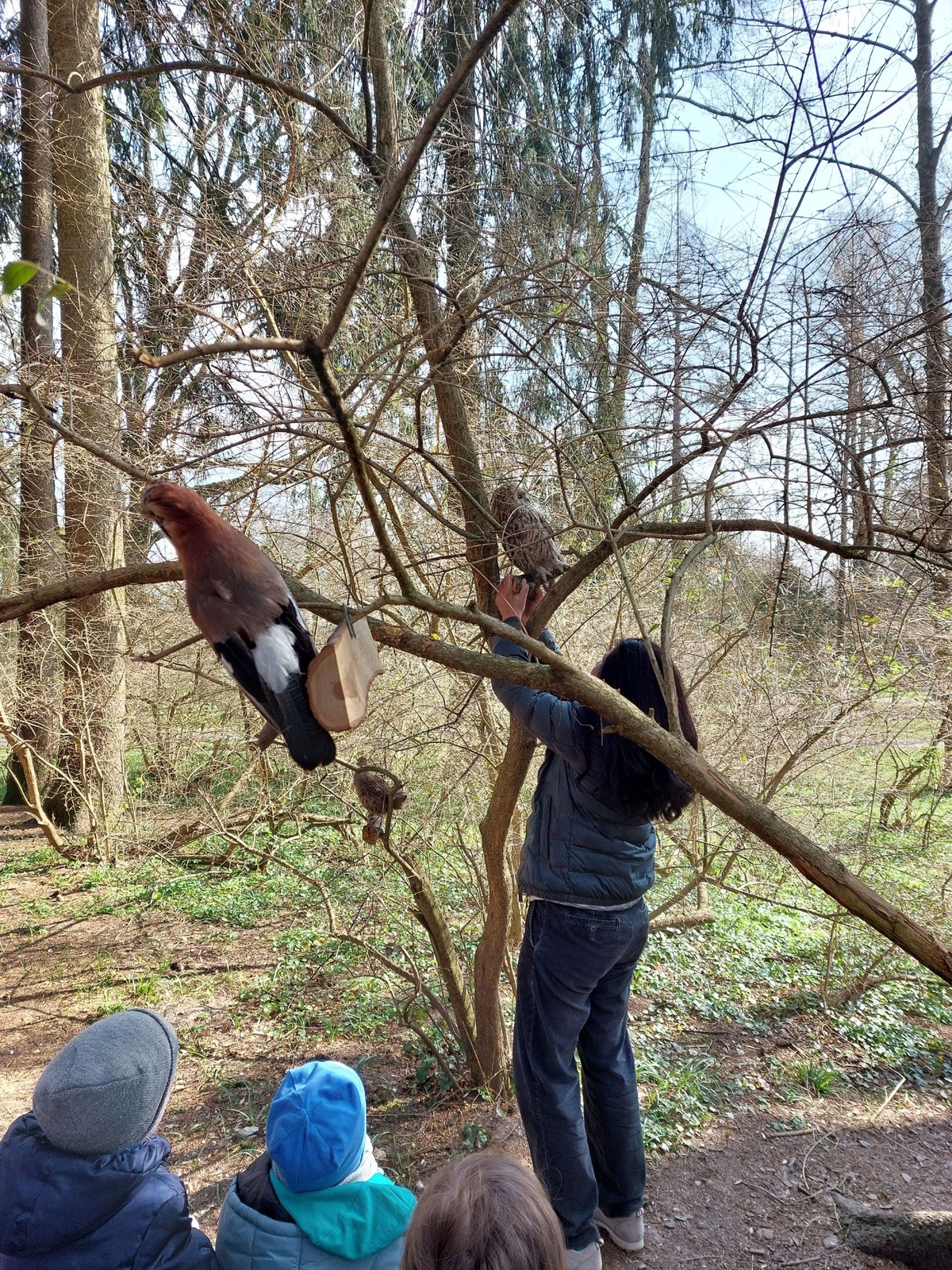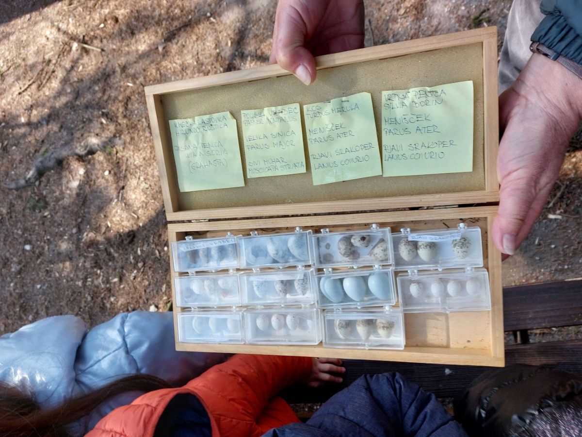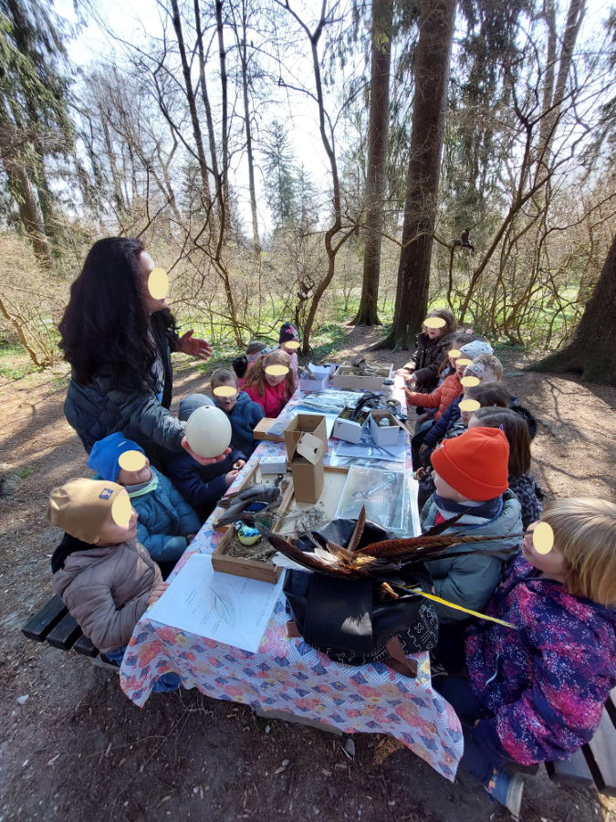 Na lep ☀️sončen spomladanski dan smo se odpravili v park Tivoli proti smeri 🌲Smrekovega gaja, kjer smo imeli z ornitologinjo Zlato zelo zanimivo in poučno delavnico o 🦉pticah v naravi in okrog nas. Na grmovju in na mizi so nas pričakale zelo zanimive 🪺stvari iz sveta ptic, o katerih nam je govorila z veliko ljubeznijo do ptic in ohranjana biotske pestrosti ptic pri nas 🪹. Otroci so dobili terensko izkušnjo s svetom ptic in spoznali svet ptic skozi likovno ustvarjanje in igro. Zelo lepa izkušnja otrok pa je bila, da so videli, kako je prišla velika sinica po semena na roko. Ta dan pa je bilo okoli nas tudi veliko veveric, ki so nas zabavale poleg ptic. Samo delavnico pa smo povezali s projektom Biotske pestrosti programa Ekošole. 🦅