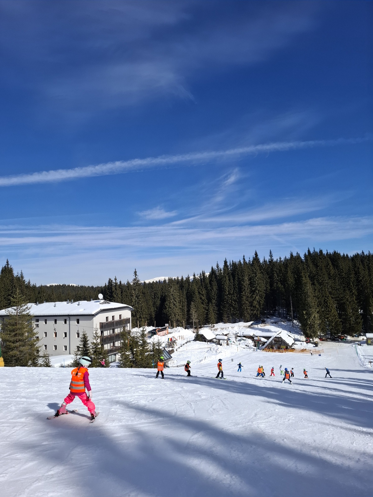 Pogumno smo usvajali vlečnice in z vsakim spustom postajali bolj samozavestni ter ponosni sami nase. Naši zavoji so vedno bolj spretni, pogum pa iz dneva v dan večji.