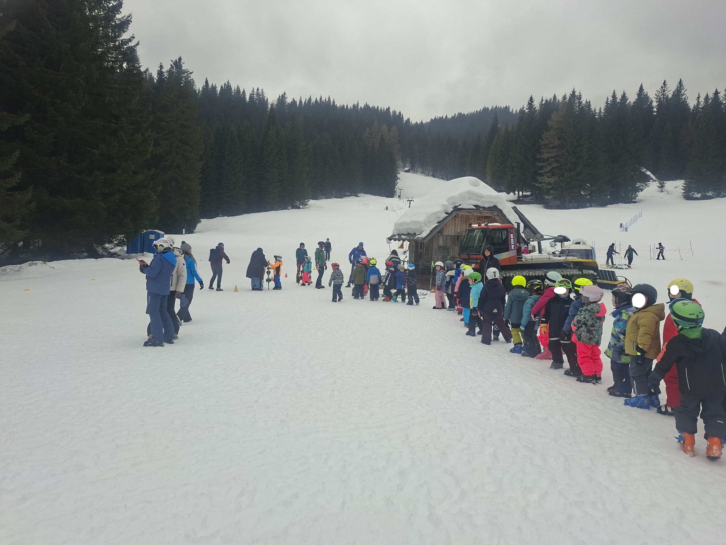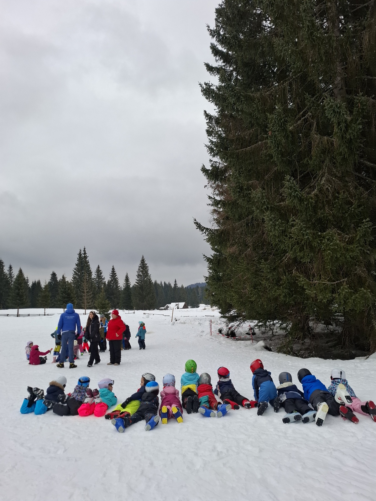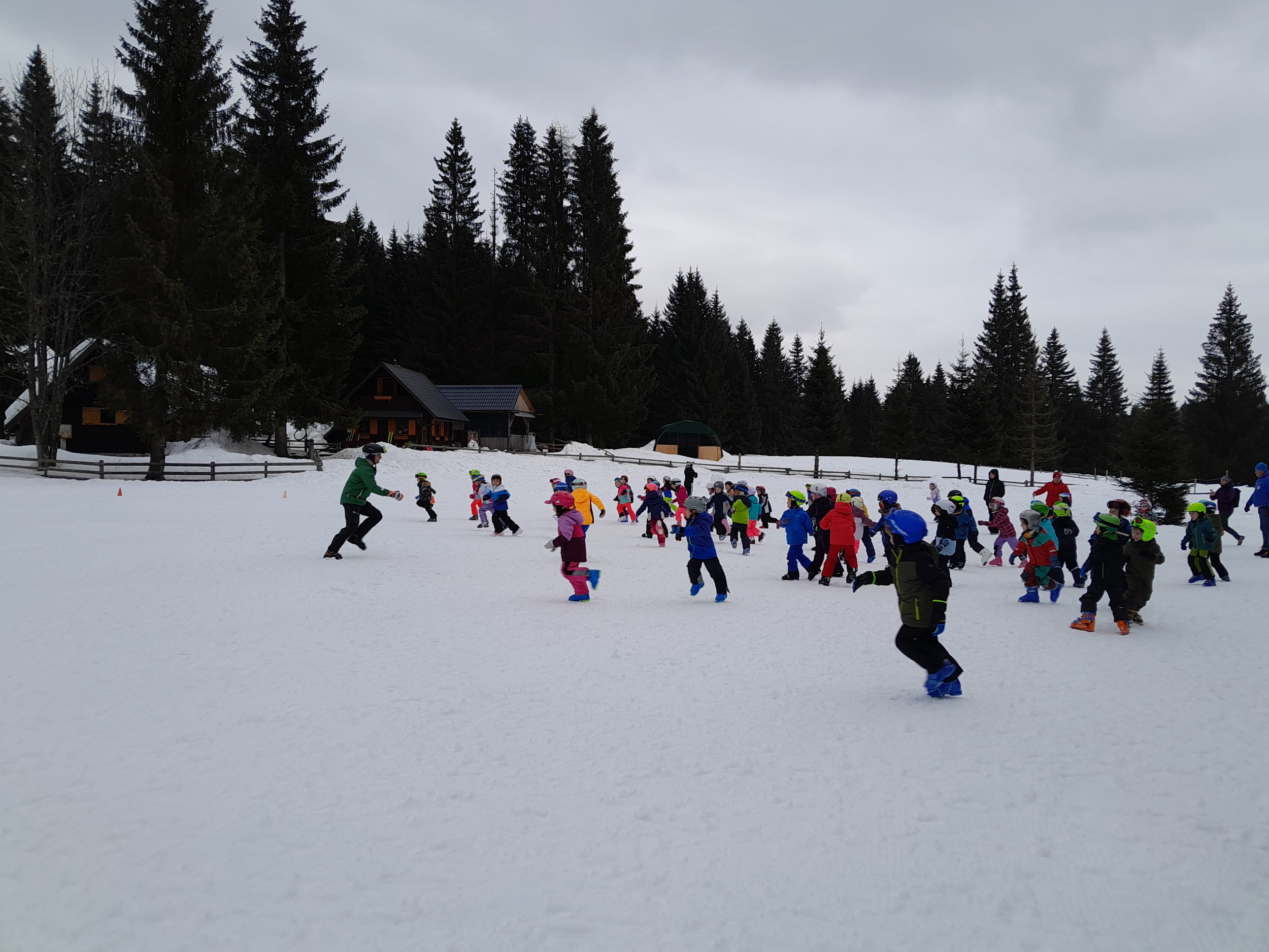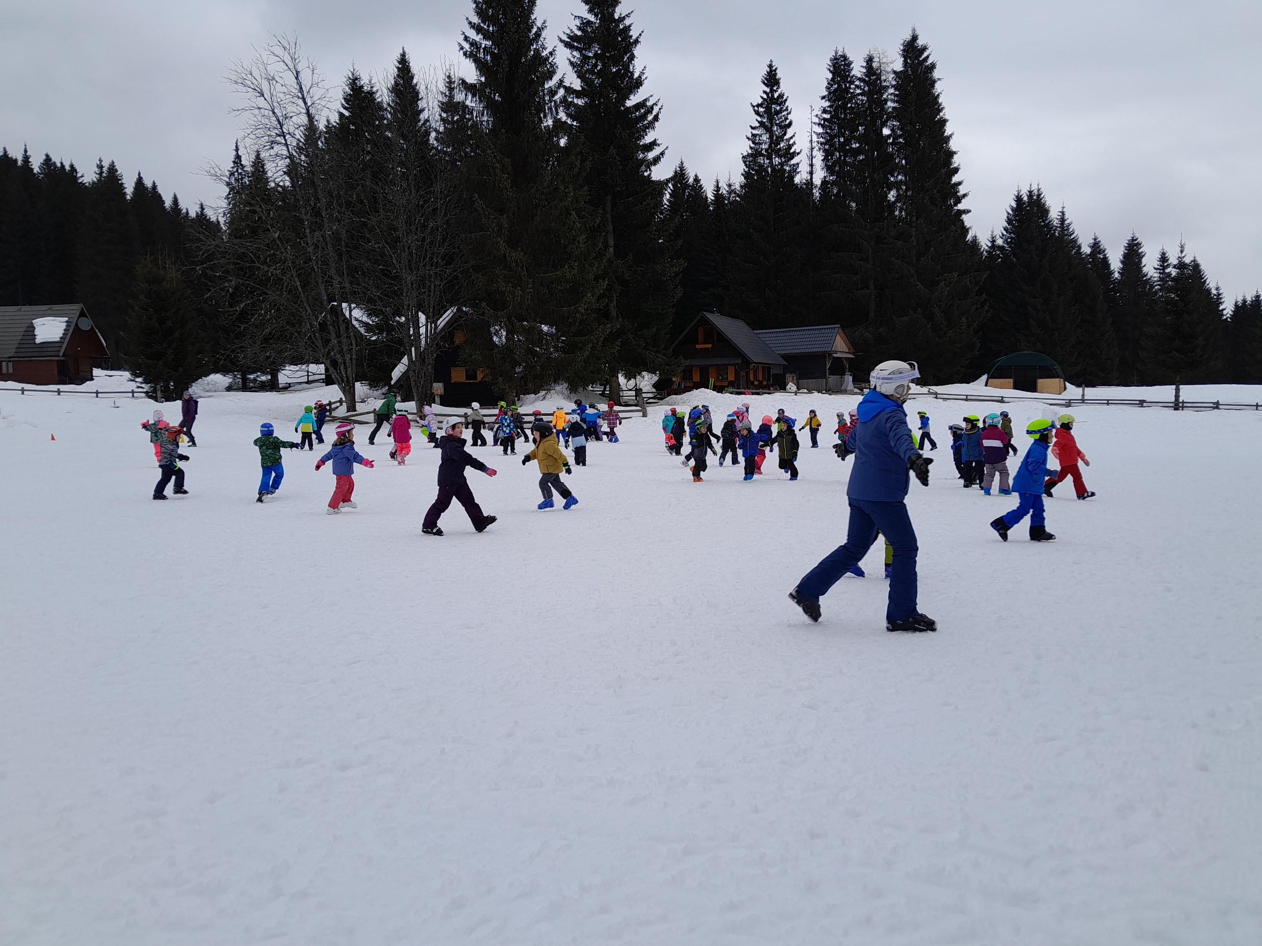 Z avtobusom smo varno prispeli pred Hotel Jelka, kjer smo se namestili v sobe. Kosilo nam je dalo moč za prve zavoje na belih strminah. Otroci so z navdušenjem stopili na smuči in se pogumno preizkusili v prvih vijugah – prav vsem je šlo odlično! Vmes smo se okrepčali še s sadjem.